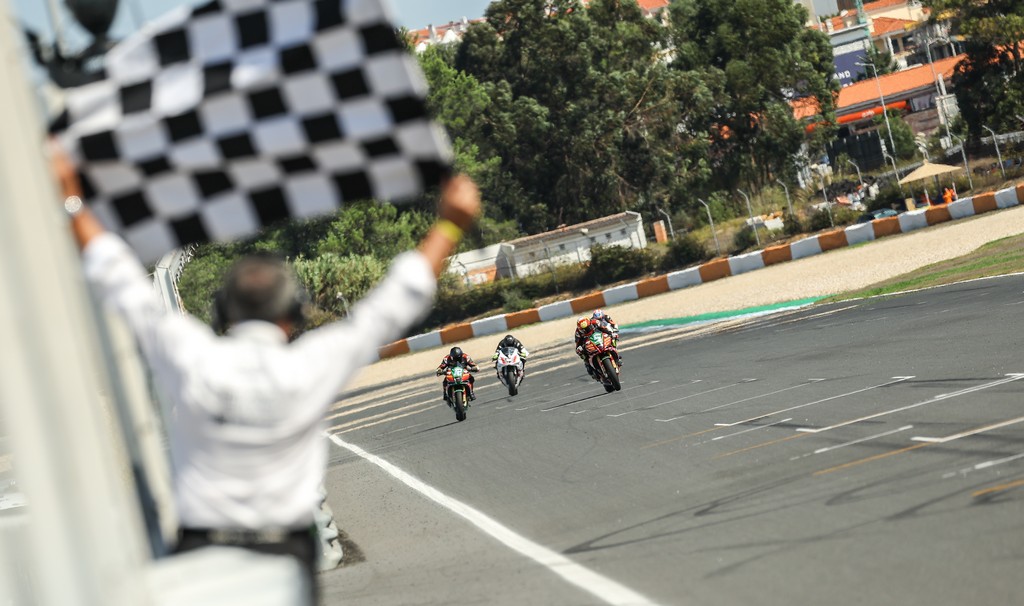 A Tuono de Bogdanov, saindo da pole, faz o holeshot e “crava” logo 2s na primeira volta, passeando a sua superioridade até ao fim sempre dentro do segundo 48, vencendo com 14s de vantagem sobre a S1000R de Amaral. Esta Tuono não está fácil!!