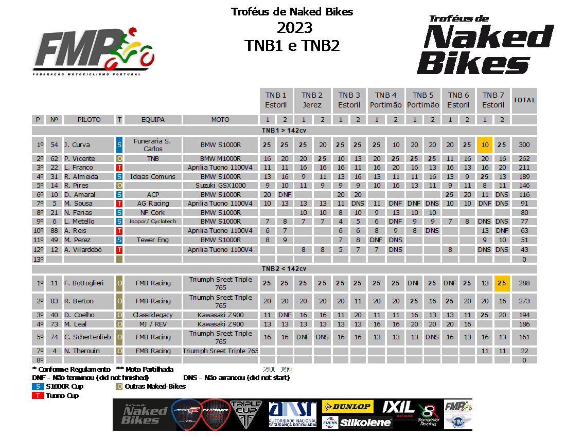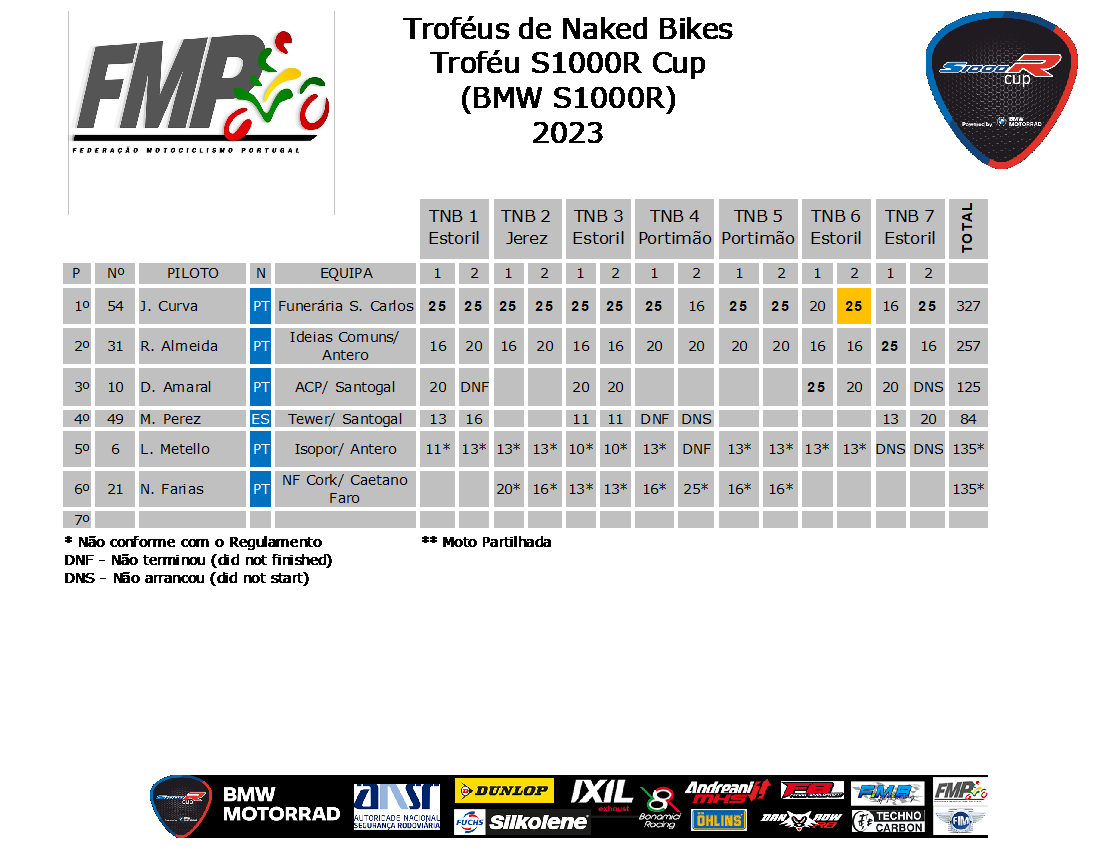 Classificação S1000R Cup Após Estoril IV TNB 7 – MCE – 28/29 Outubro